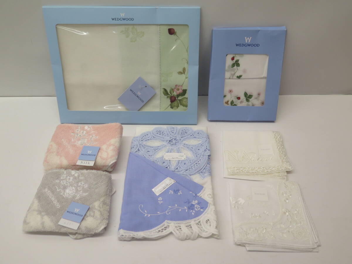 未使用保管品 ウエッジウッド(シルクタオル・ハンカチ・ランチョンマット) スワトウブルーハンカチ ニナリッチレースハンカチまとめて