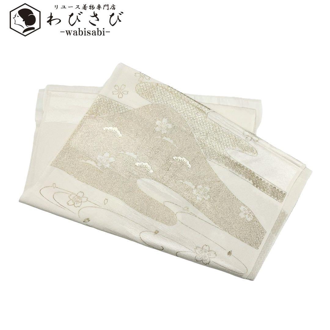 - 和装小物 帯揚げ 正絹 綸子 霧に小花模様 金彩 乳白色 C-5587 着物 きもの kimono 和服 和装 中古 リサイクル着物 【送料無料】