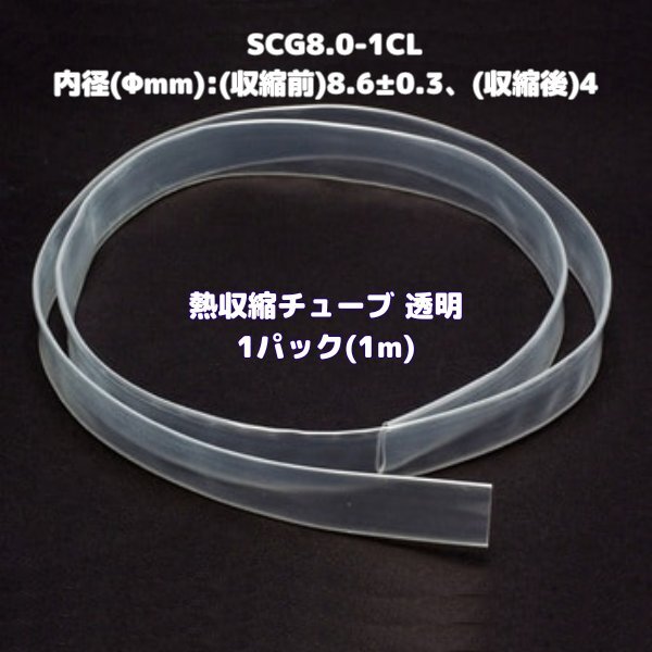 - 熱収縮チューブ 透明 SCG8.0-1CL 内径(Φmm):(収縮前)8.6±0.3 (収縮後)4 1パック(1m)