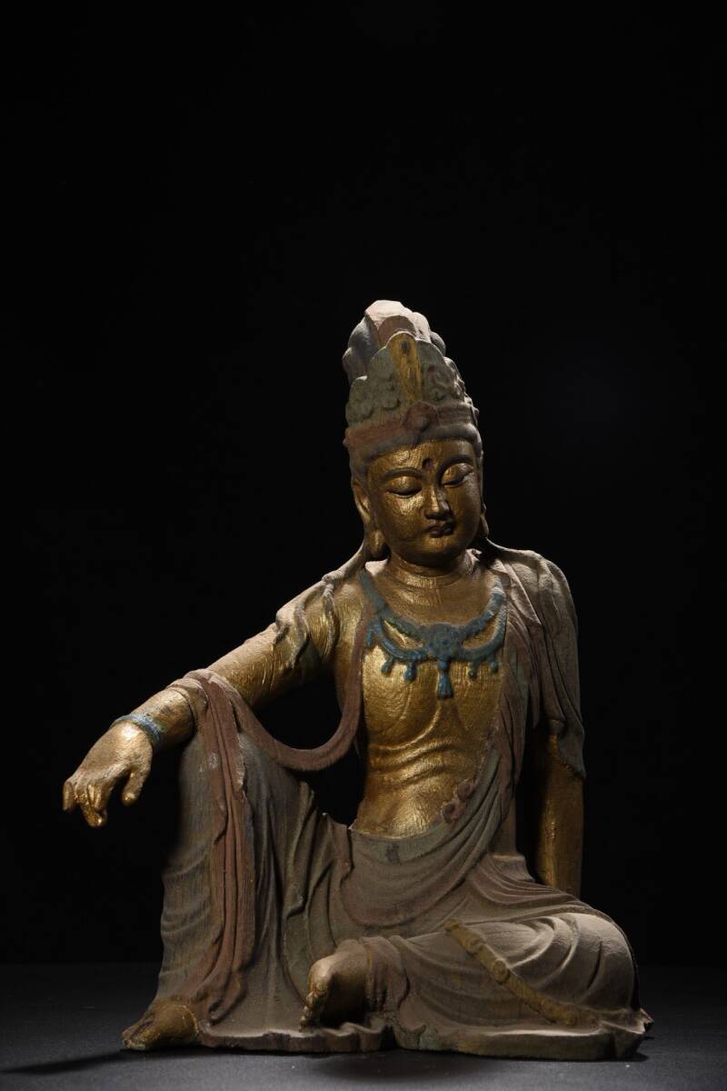 - 【仁】『木材細密彫・漆金・自在觀音像・仏教古美術・供養品』極細工 古賞物 中国古玩 古美術 古美味