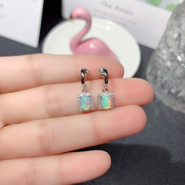 【証明書付き】925スターリングシルバー天然オパールピアス、5x7mm、ファインチャーム、ウェディングジュエリー