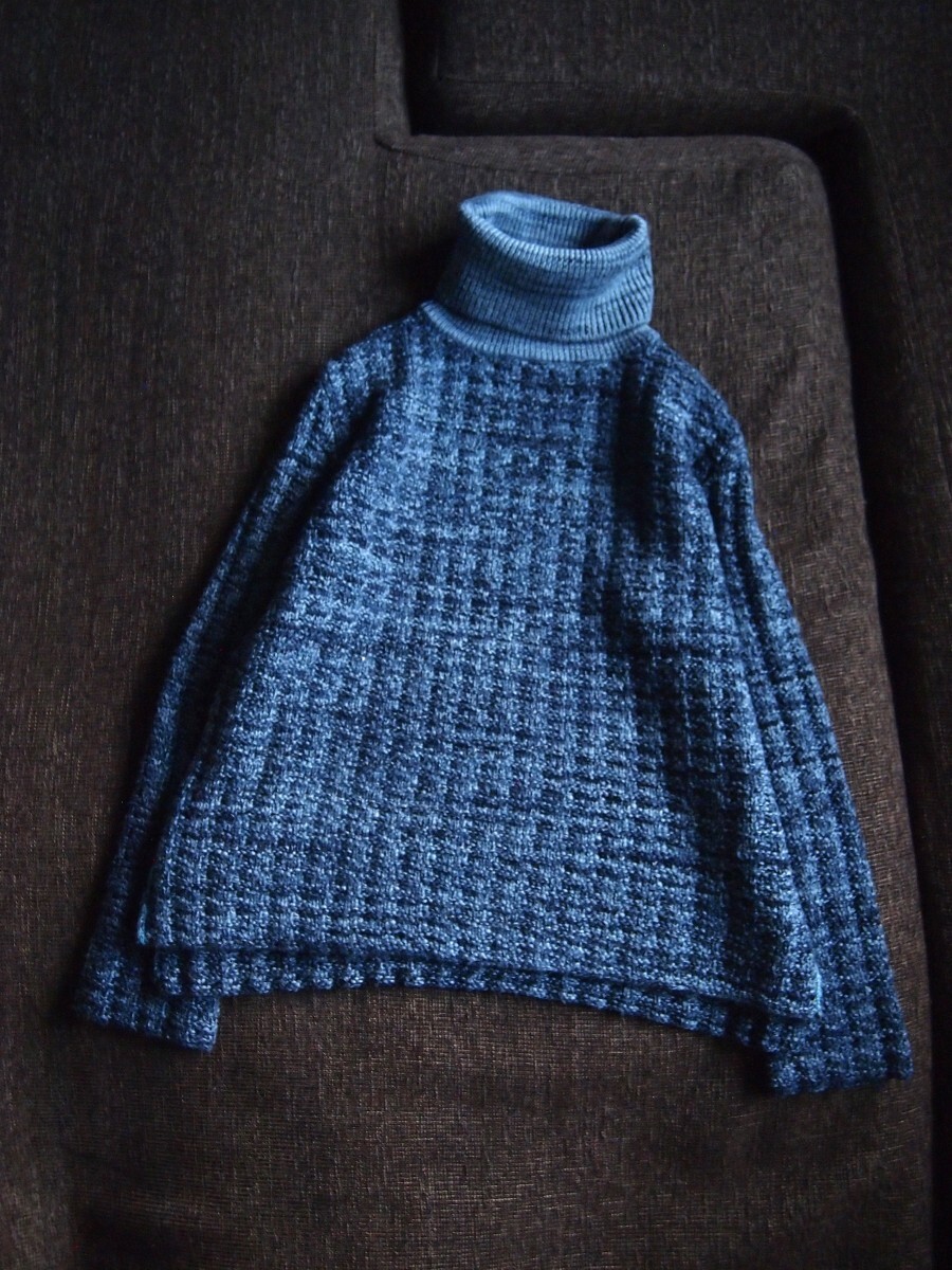 > ★ハンドメイドの様な素朴な佇まい◎ローゲージな濃淡ネイビーが紡ぐしっとり滑らかタートルネック ニット★45rpm 45R 即決 セーター