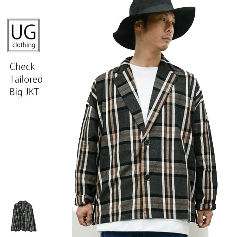 - ビッグシルエット チェック柄ジャケット rv8011 メンズ ビッグシルエット シャツジャケット テーラード 新品 L