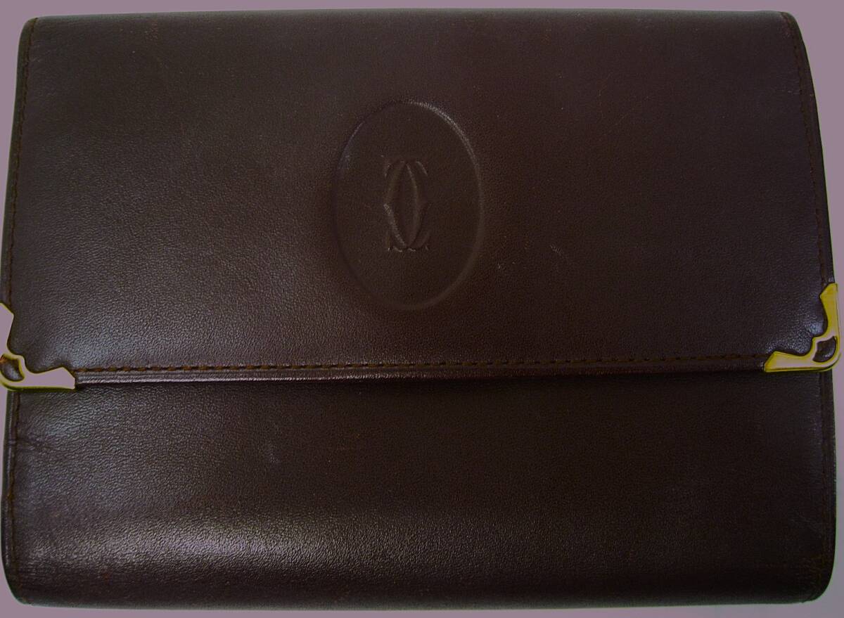 - 【東京 谷中 質屋おぢさん】カルティエ Cartier 本革 三つ折り財布 ワインレッド ガマグチ小銭入付
