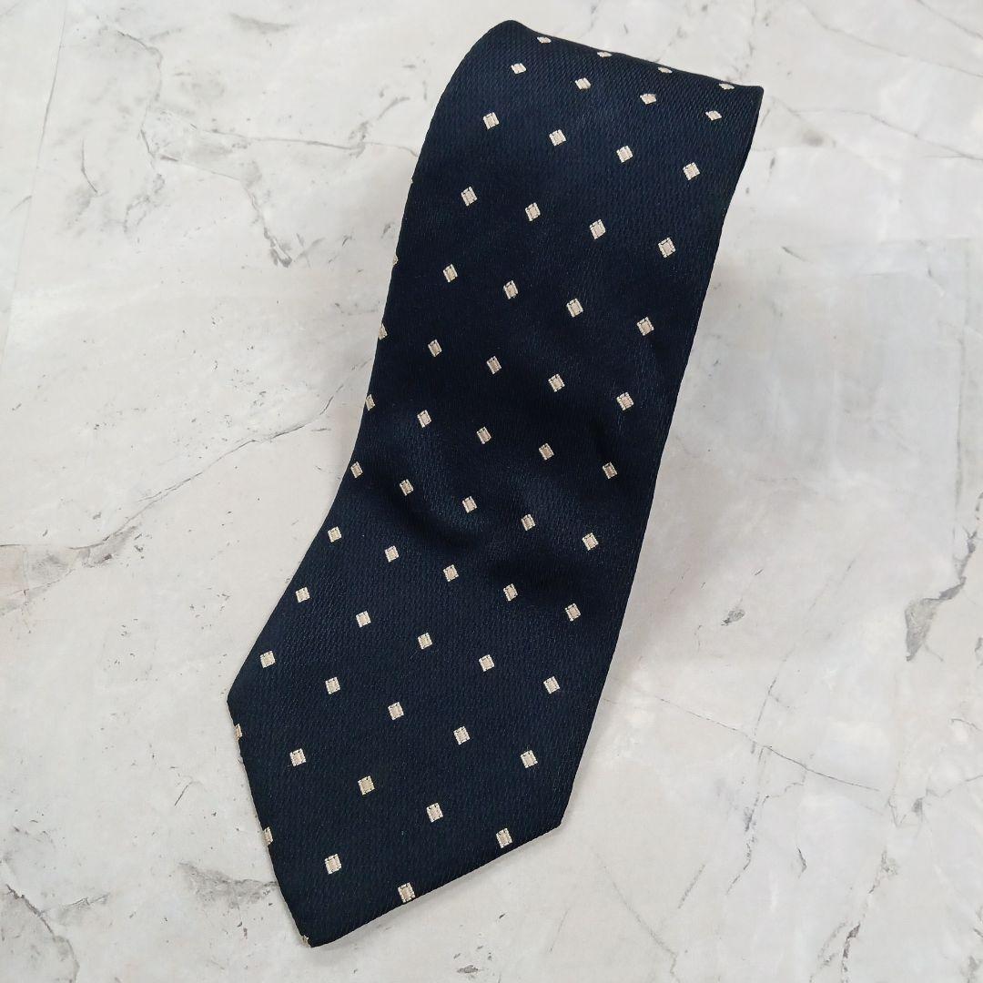 - グリーンレーベルリラクシング ネクタイ 紺 ドット柄 絹【n478】