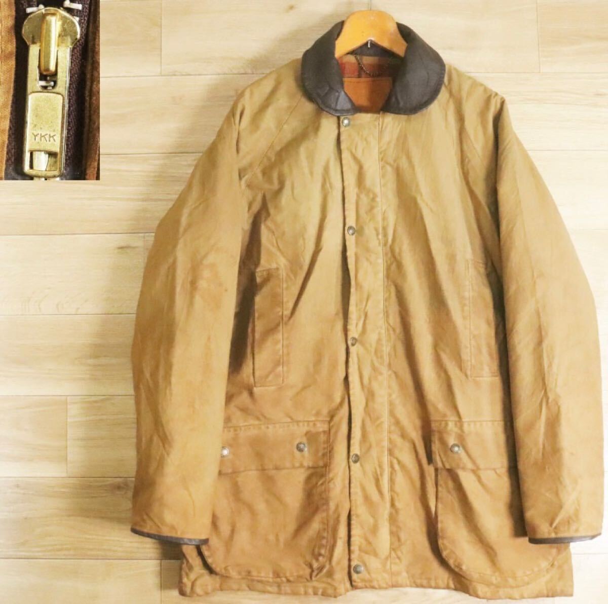 - 希少古着 イギリス製 オイルドジャケット 襟レザー ハンティングジャケット YKKジッパー サイズL ※日本XL相当