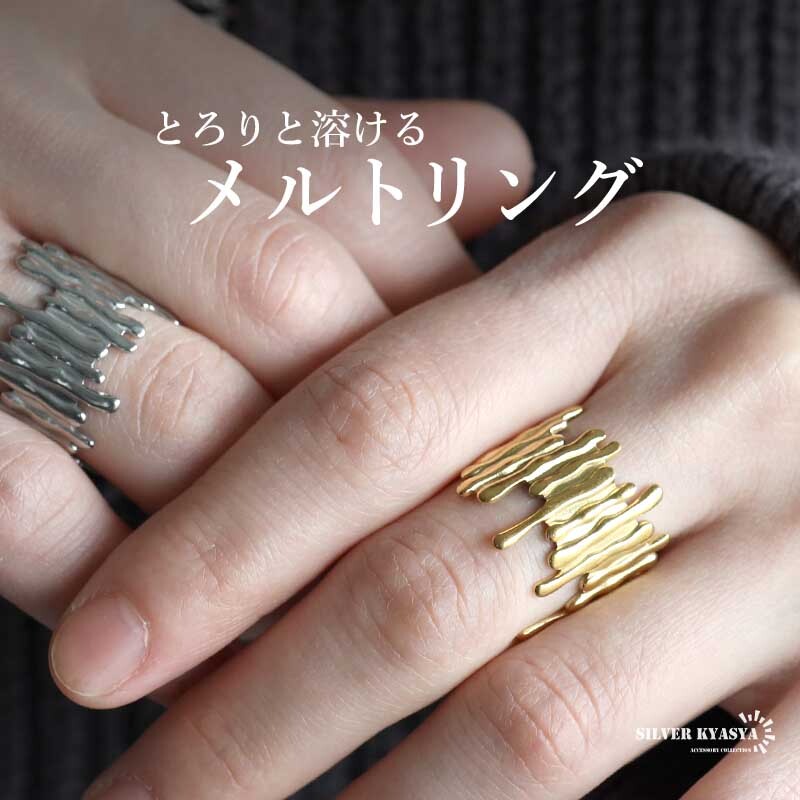 - (シルバー) ステンレス 溶ける メルトリング 変形リング ゴールド 18K GP フリーサイズ 女性 金属アレルギー対応