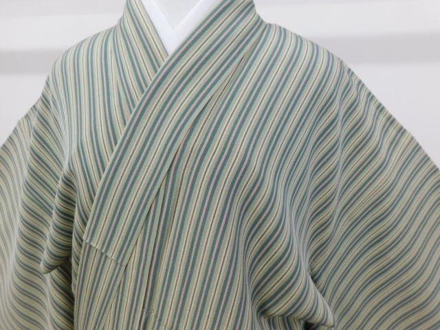 - 〔楽布特選〕P32958 縮緬 縞柄 小紋 袷 オークション t