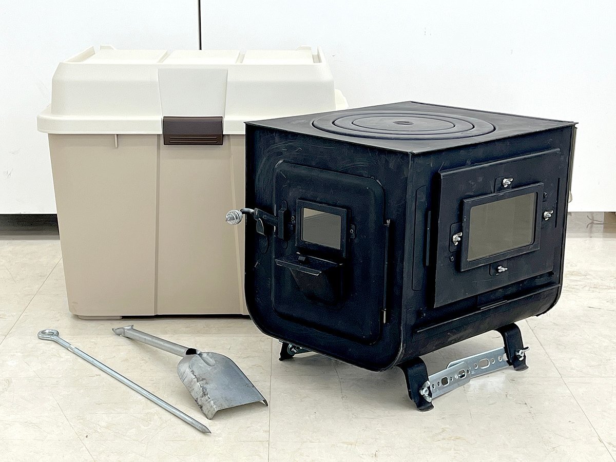 - 新保製作所 ミニ薪ストーブ チョッパー 3面ガラス窓付き 横出し chopper-3men-yoko シャベル 収納ケース付き キャンプ アウトドア