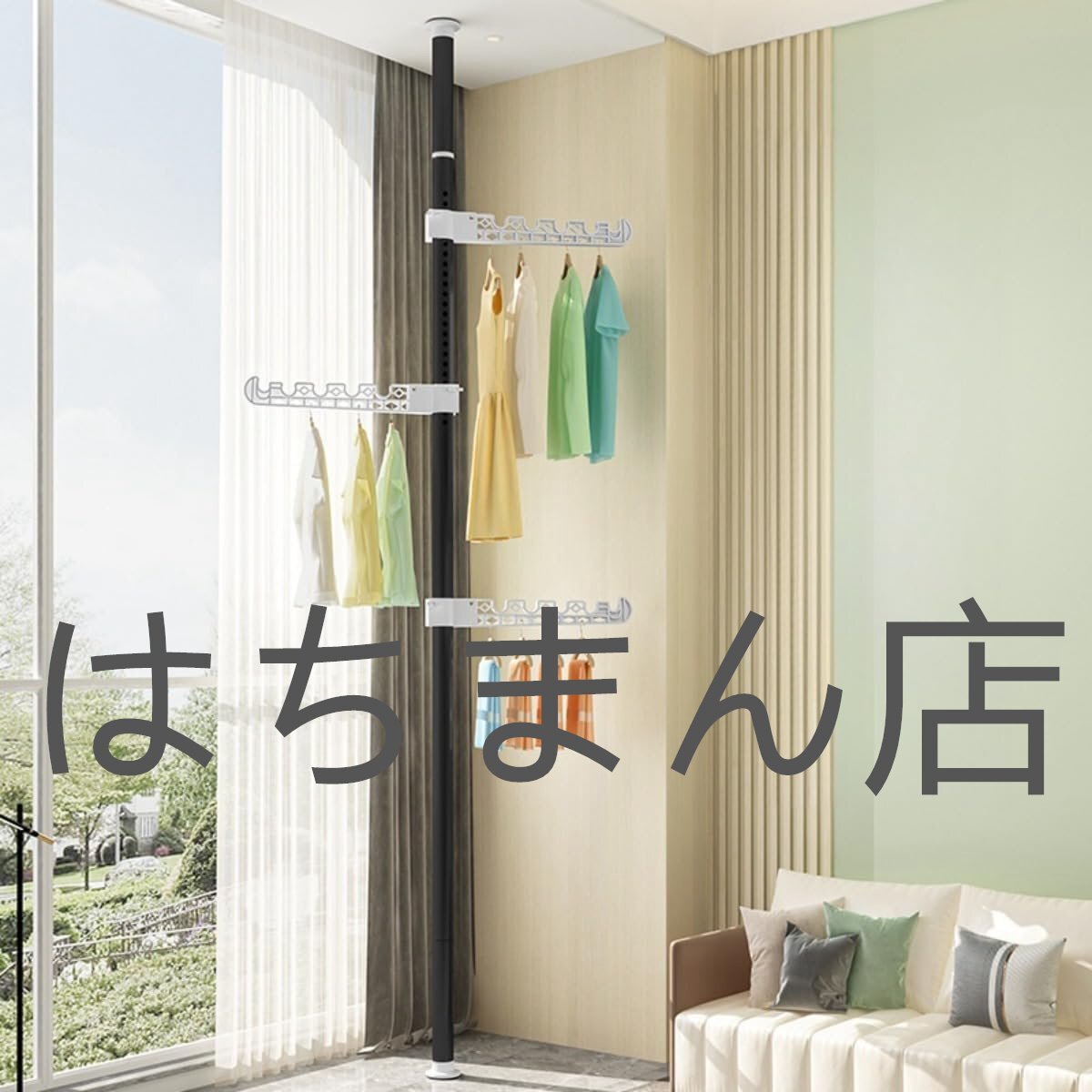 - ハンガーラック つっぱりポールハンガー ポールハンガー コートハンガー 収納 高さ110-410cm 物干し竿です (黒です,3翼です)