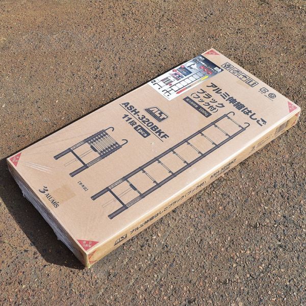 - 【新潟発】未開封 アルミス アルミ伸縮はしご 11段 ASH-320BKF 全長3.2m 重量8kg ブラック フック付 高所作業 脚立 はしご 園芸 工具 中古