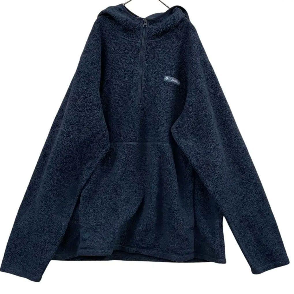 > コロンビア メンズフリースパーカー L 黒無地 ハーフジップ ロゴ【2615】
