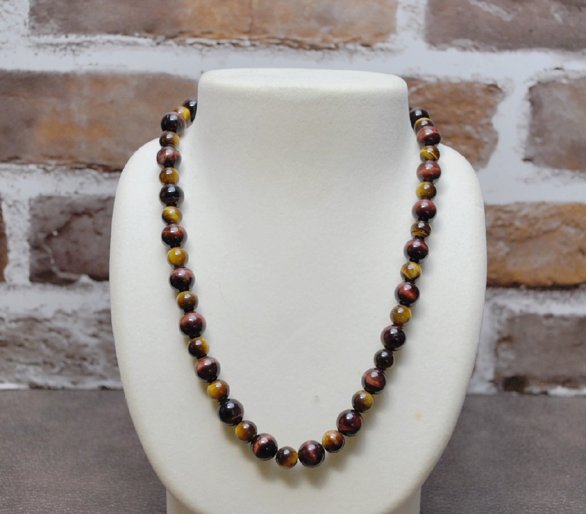 - 送料無料 新品 ~ ☆ タイガーアイ( 虎目石 )ネックレス 8~10mm 45cm SILVER付 金運・仕事運・行動力・好奇心・洞察力