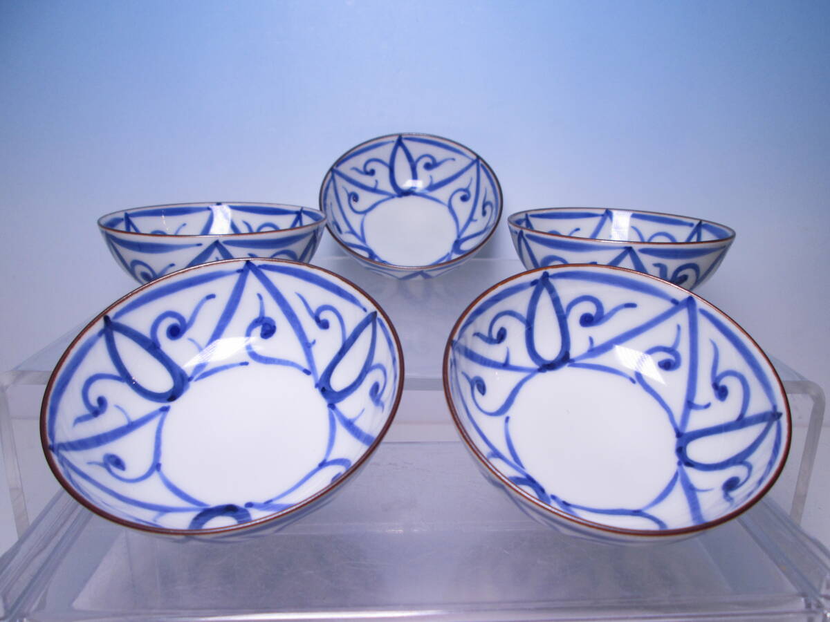 - ☆お料理屋さんの器 清水焼 高木岩華 染付 小向付 五客 小鉢/茶懐石/割烹/日本料理
