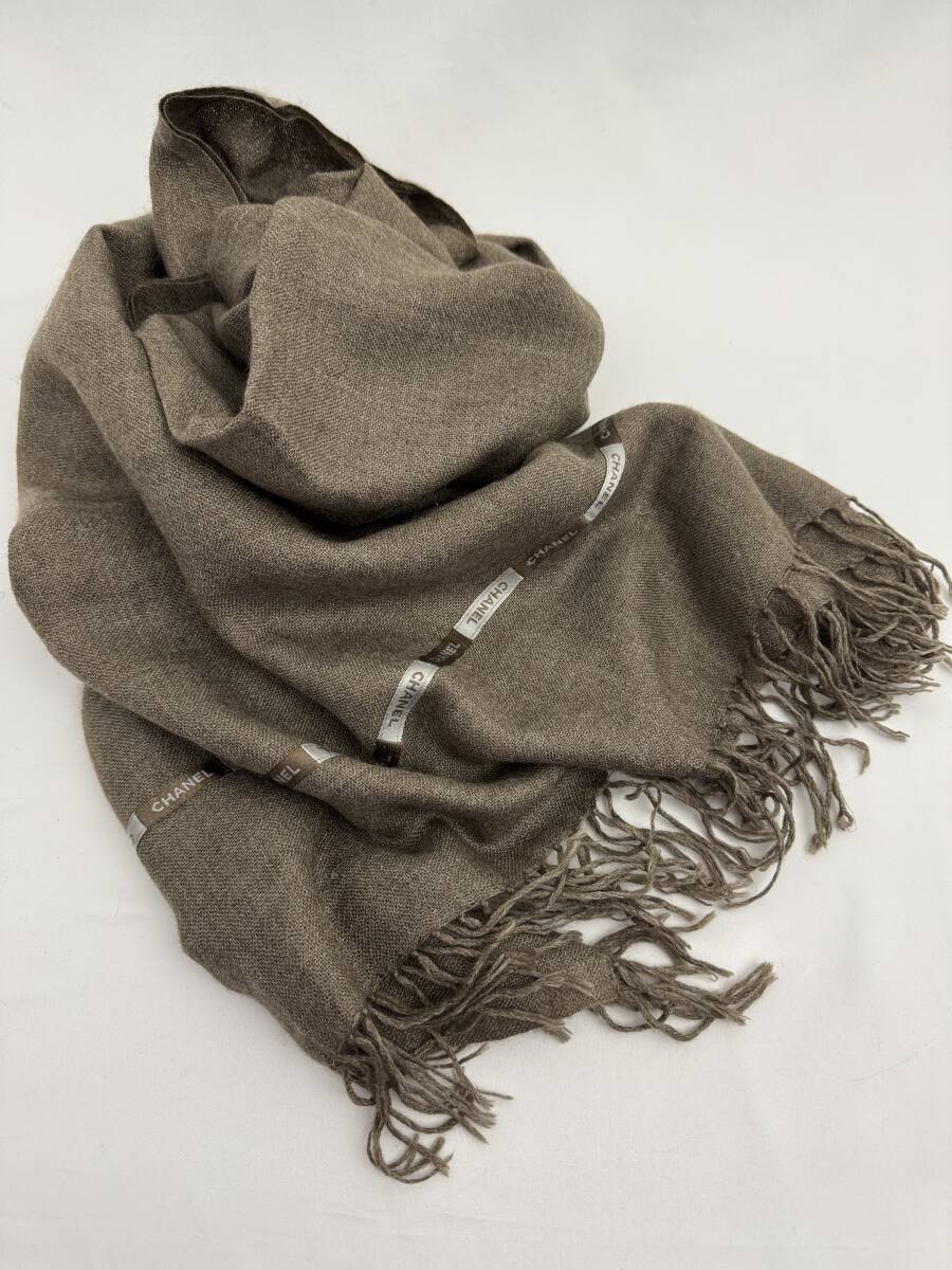 > 7C0913【本物保証】シャネル ストール マフラー ロゴ リボン テープ カシミヤ シルク ブラウン CHANEL