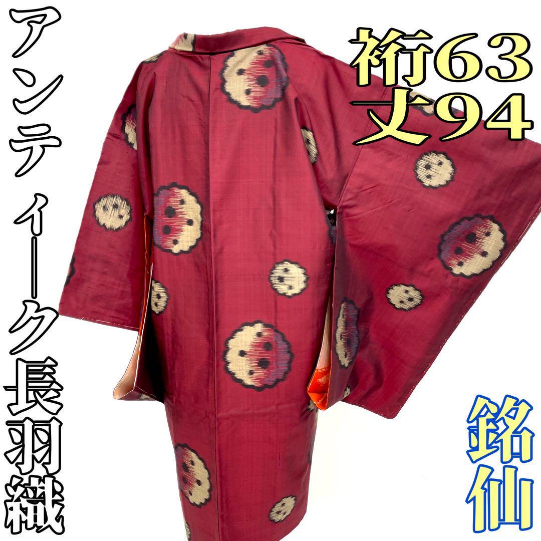 - 【着物と帯 時流】ハ25373◆アンティーク長羽織◆銘仙 赤 美品