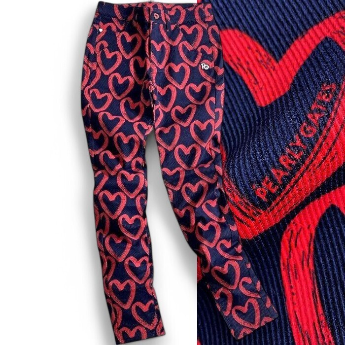 - PEARLY GATES パーリーゲイツ 定価3.1万 春物 TEXBRID 落書きハート柄 ストレッチ パンツ ゴルフ レディース 2131306 120 0▲039▼50225w10
