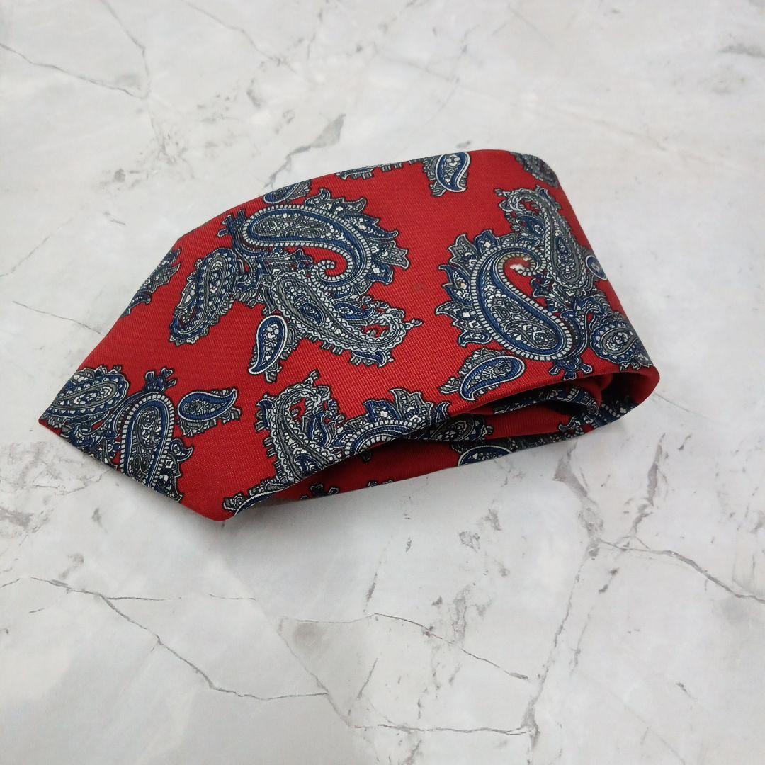 - クリスチャンディオール ネクタイ 赤 白 紺 黒 総柄 シルク【n669】