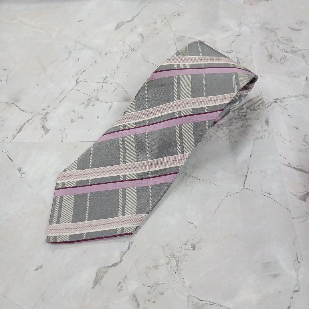 - エポカ ネクタイ 灰色 ストライプ柄 絹【n640】