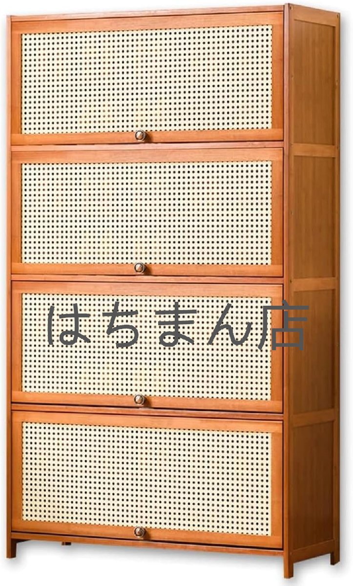 - 下駄箱 竹製 大容量 靴箱 玄関収納 省スペース ルーバー扉 通気性 消臭 シューズラック 靴棚 クローゼット (2段, 幅60cm) (60cm,4段)