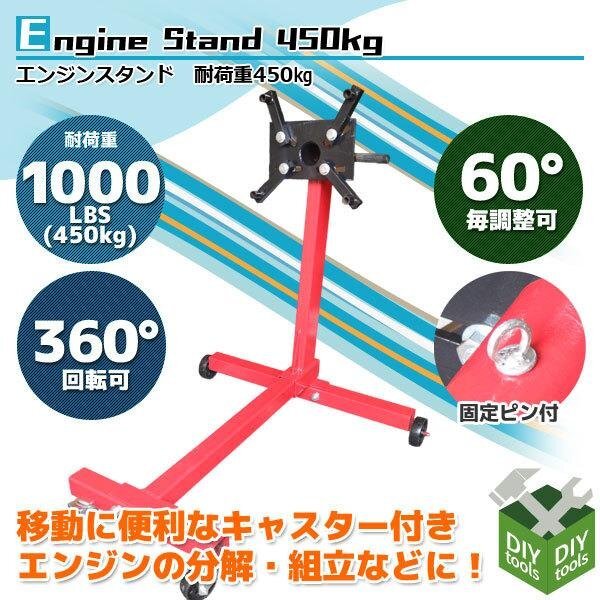 - 360度回転 エンジンスタンド 最大荷重450kg(1000LBS) エンジン分解 メンテナンス キャスター付 ●新品!