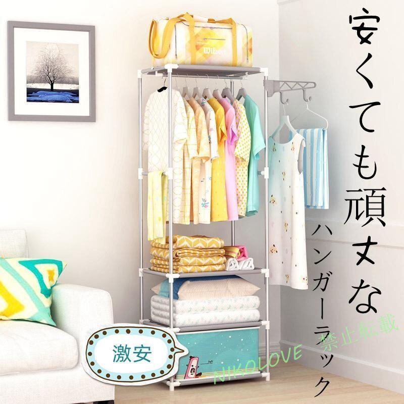 - ハンガーラック 激安 省スペース 頑丈 子供 収納棚 耐荷重約40kg キャスター付き おしゃれ 衣類ハンガー 洋服 コート掛けMK083