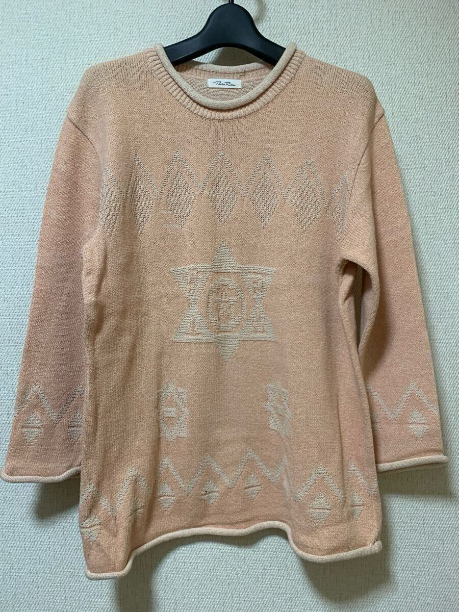 > porta rossa 長袖チュニック M〜L ピンク系 トップス 綿100% ニット プルオーバー クルーネック スポーティ レトロ