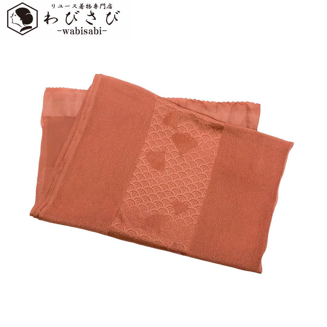 煉瓦のお色味に青海波や扇子がデザインされた品のある素敵な柄裄のお品でございます。
