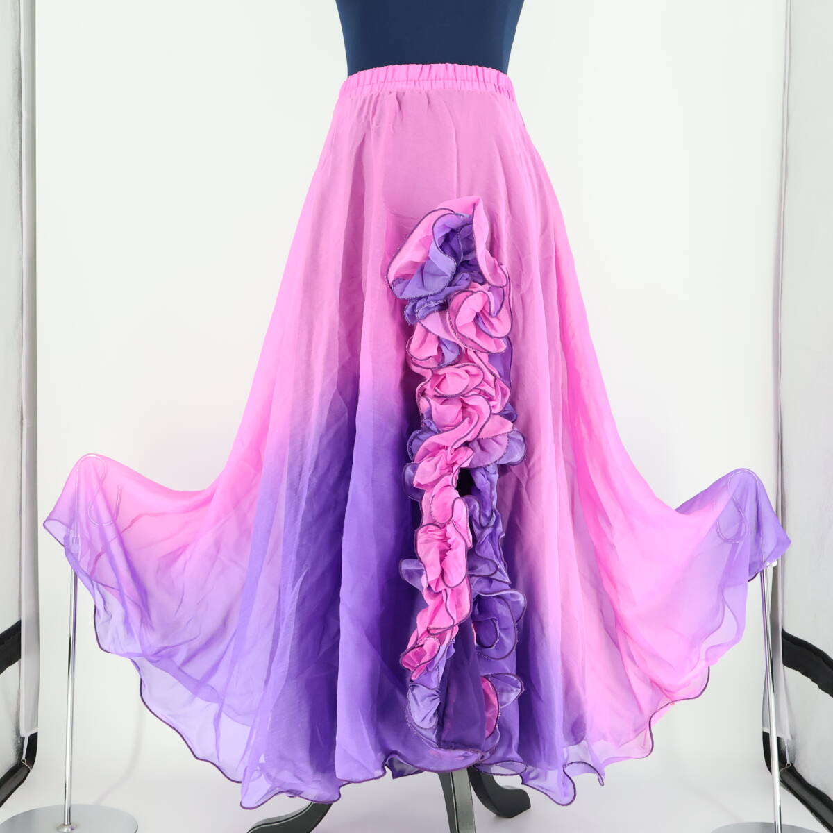 - 『送料無料』【ベリーダンス用 オリエンタル衣装】パープル×ピンク スカート レース生地 2枚重ね 紫 グラデーション フリル 鮮やか 可愛い