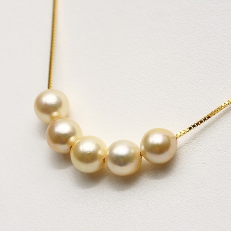 - アコヤ真珠スルーパールネックレス 5ピース 7.5-8.0mm ゴールドカラー シルバー製チェーン