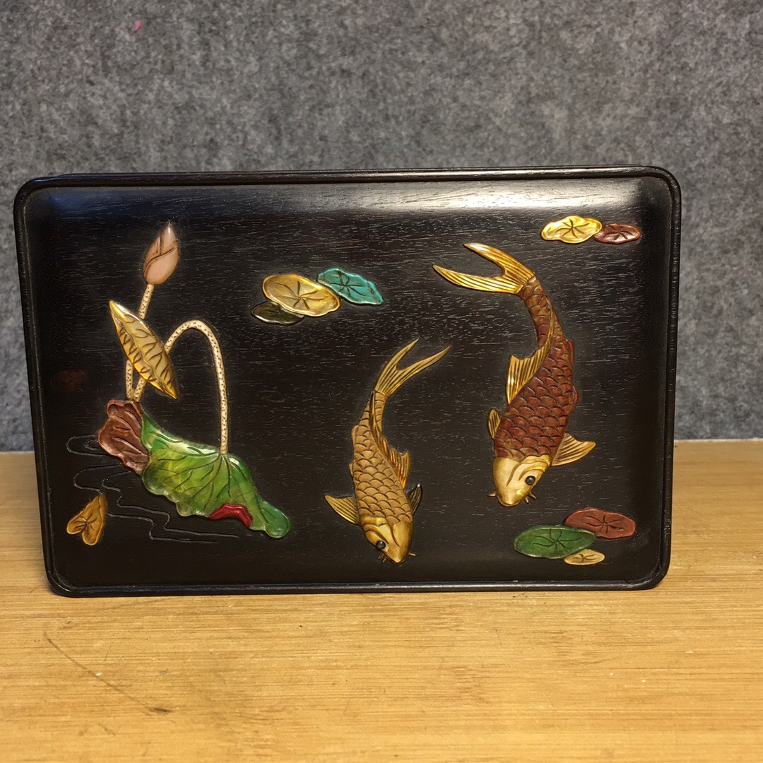 - 【仁】『紫檀木製・細密彫・百寶嵌・連年有餘紋・首飾盒・置物・賞物』極細工 古賞物 中国古玩 古美術 古美味