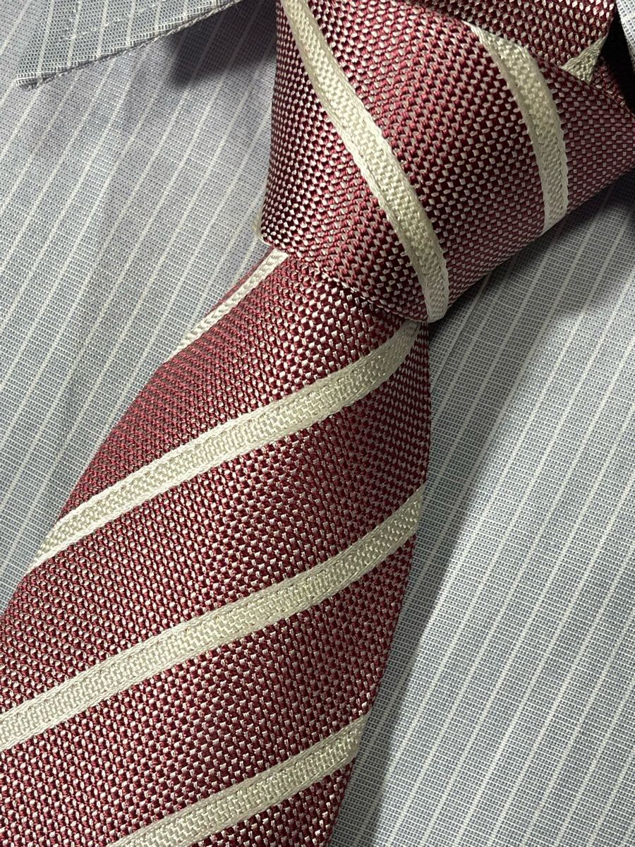 > ほぼ未使用 ″HUGO BOSS TAILORED″ ヒューゴボステイラード ストライプ クワトロピエゲ ブランドネクタイ 503103