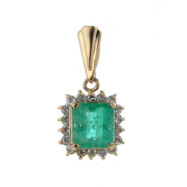 > K18YG イエローゴールド ペンダントトップ エメラルド 0.63ct ダイヤモンド 0.14ct スクエア 取り巻き【新品仕上済】【zz】【中古】