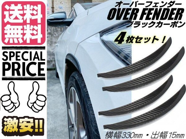 - 自由自在に曲がる 1台分 33cm×4本 出幅15mm 汎用 オーバーフェンダー ブラック カーボン ハミタイ対策 アーチモール メール便送料無料/6
