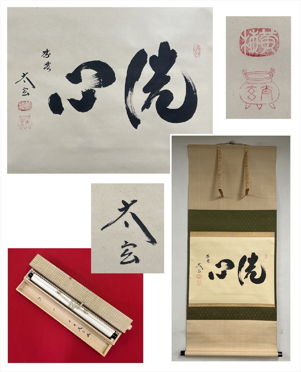 - 【千寿】大徳寺派 黄梅院 小林太玄 洗心 横物 紙本 d1246◆在銘 箱 茶掛 掛軸 掛物 茶道具 100035033