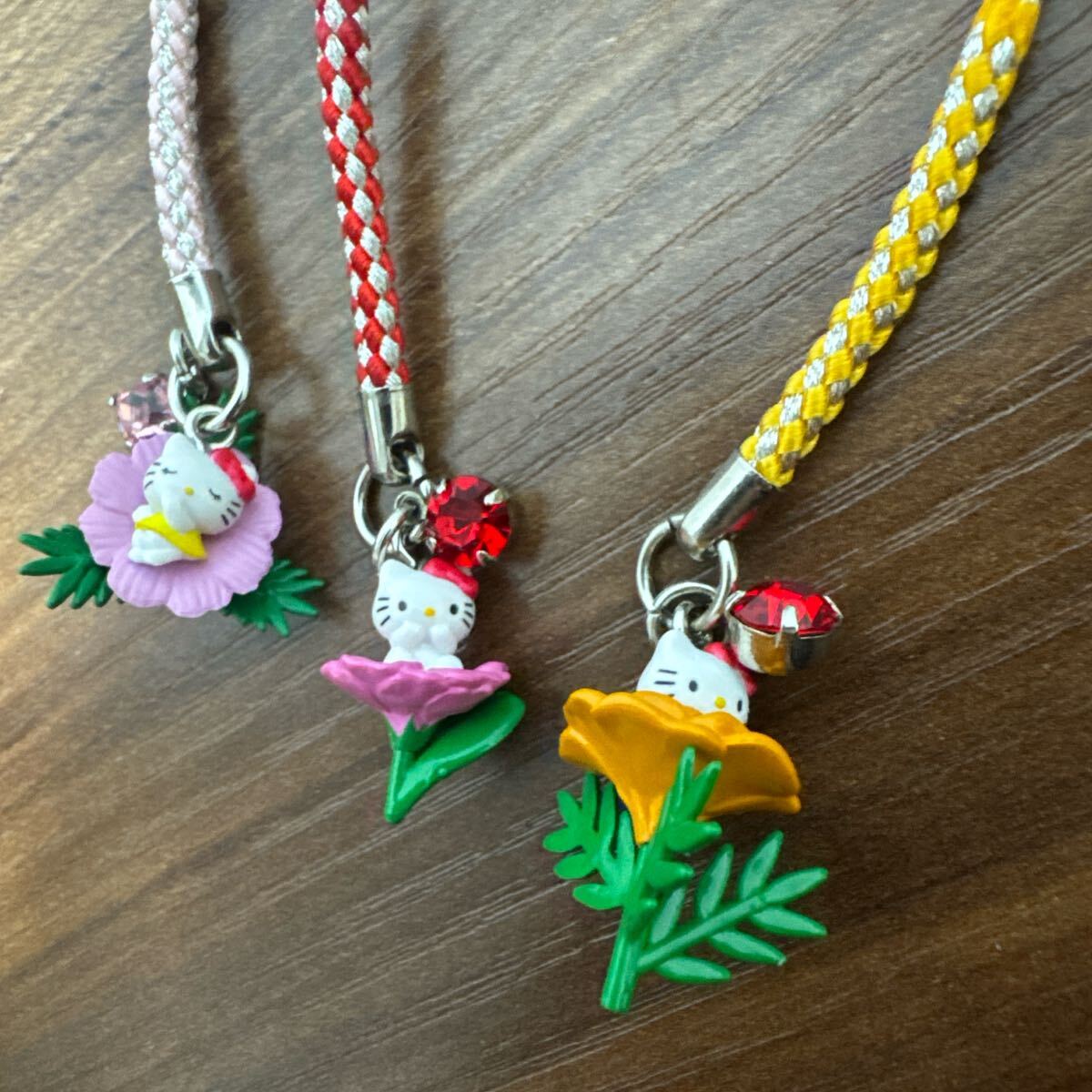 - キティちゃん 根付け 3点セット 2005 フラワー 花 装飾付き