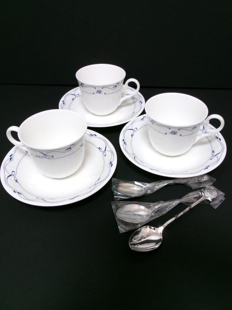 > 【送料込】 NARUMI ナルミ 食器 ホワイト 白 カップ&ソーサー ティースプーン 各3セット 東名古屋カートリークラブのマーク 日本製/968053