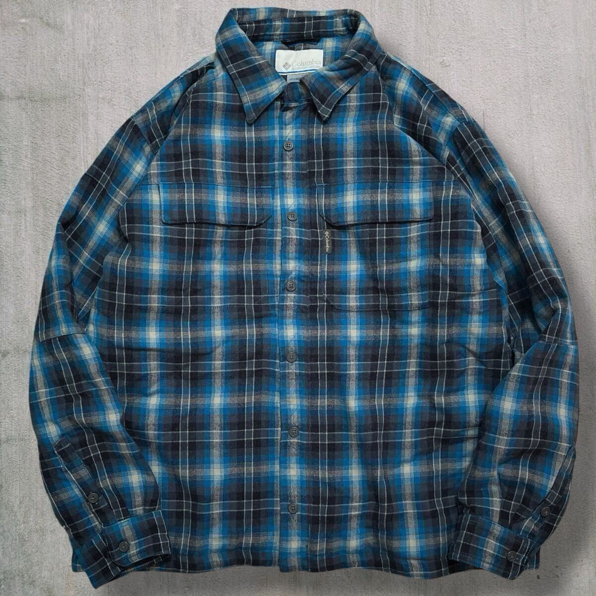 > Columbia コロンビア 中わた入り ブルーチェック柄シャツダウン XL●洗濯プレス済● 長袖シャツ ネルシャツ アウトドア 古着/179