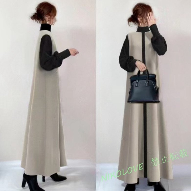 > ☆新品 セーター素材のロング丈ワンピ★ ★Lサイズ大きいサイズもOK★Aライン白と黒のカラーブロックがおしゃれ MK579