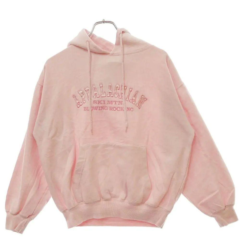 - コットンネット レディースパーカー ライトピンク M 英字 刺繍 定番【229】