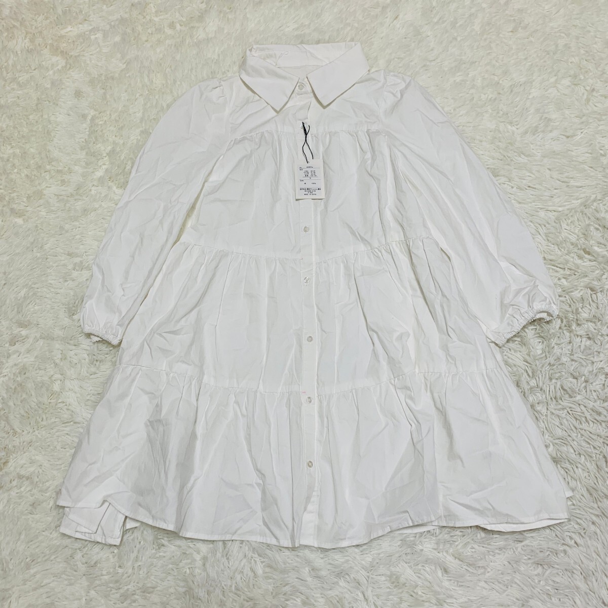 - GRL グレイル タグ付き シャツワンピース 長袖 チュニック ホワイト サイズM