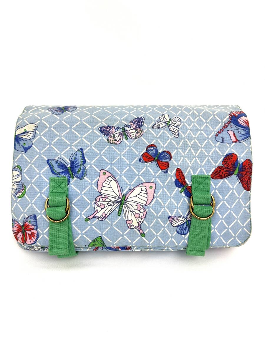 > 7C1601【本物保証】エルメス クラッチ バッグ バタフライ 蝶 格子 柄 キャンバス ブルー HERMES
