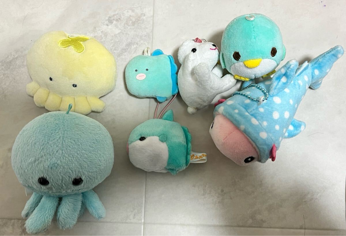 - 海の生き物 マスコット ぬいぐるみ 7個 クラゲ マンボウ ぺんぎん