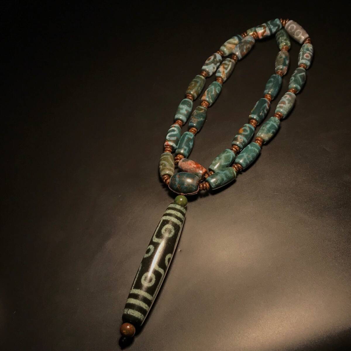 - ▽鴻▽ 瑪瑙製 細密彫 象雄多寶 九眼天珠ネックレス手持 置物 古賞物 中国古玩 中国古美術