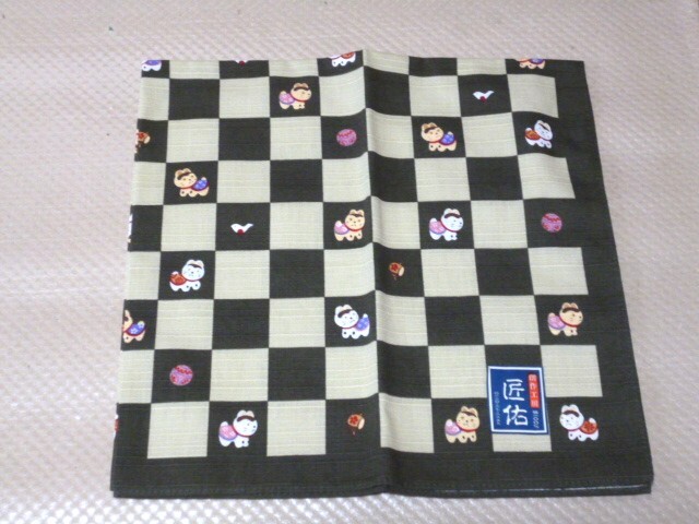 - 創作工房 匠佑 福犬 張子犬 犬張子 格子 和風 ハンカチ 未使用