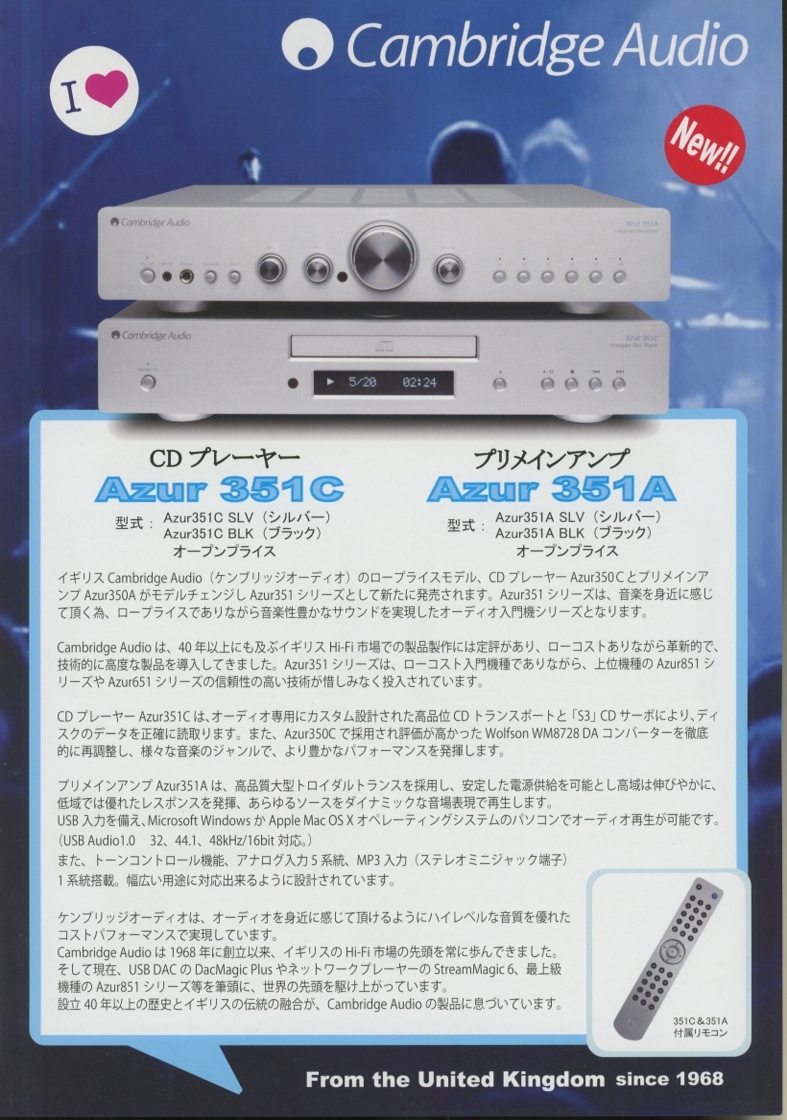 > Cambridge Audio Azur351C/Azur351Aのカタログ ケンブリッジオーディオ 管2678