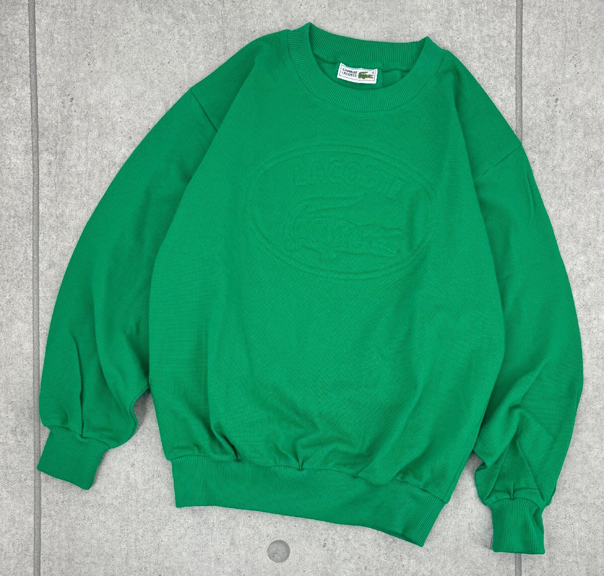 - CHEMISE LACOSTE ラコステ モジワニ ロゴ刺繍 コットン カノコ クルーネック スウェット トレーナー 3/M 緑 80s 90s 大沢商会 ヴィンテージ