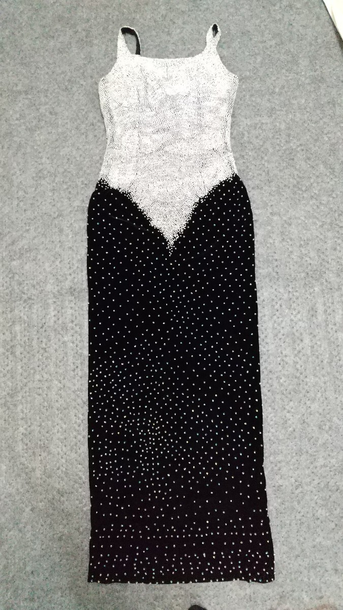 - ノースリーブロングワンピース/全面にビーズ/145cm黒