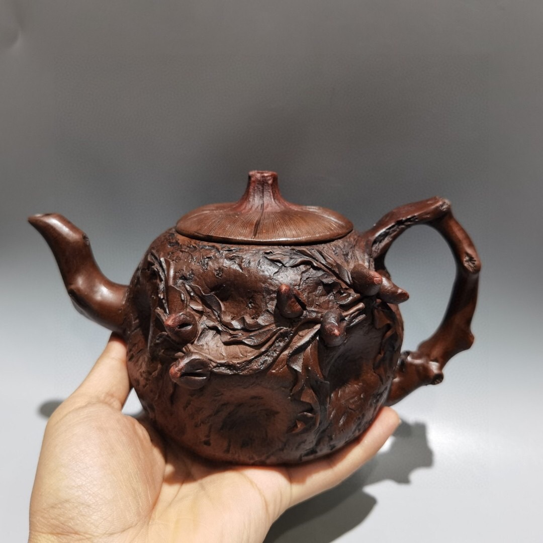 - ▽鴻▽ 茶具 紫砂壺 寿桃壺 紫泥 供春款 茶壺 酒壺 急須 茶道具 茶道品