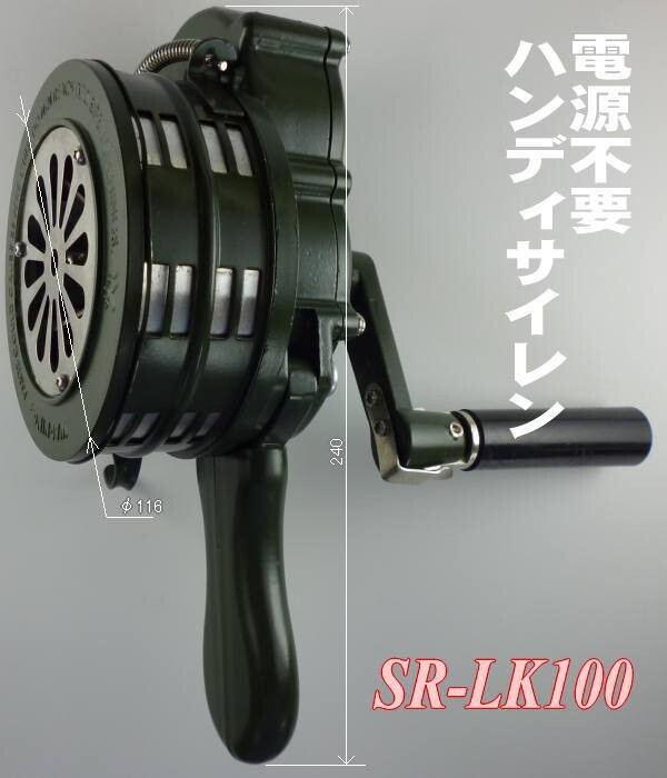 - ハンドサイレン LK-100 電源不要ハンドル手回し式